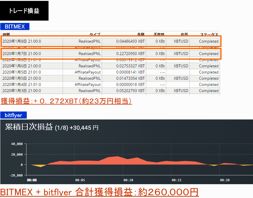 2020年1月7日〜8日:+0.272XBT+30,445円=約260,000円