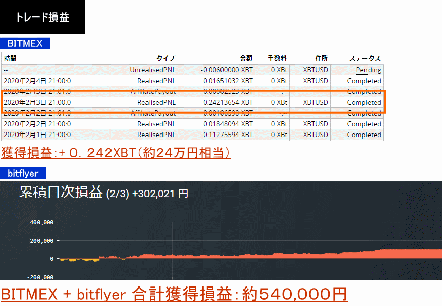 2020年2月3日:+0.242XBT+302,021円=約540,000円