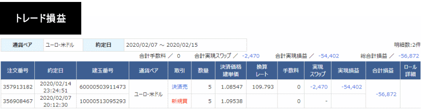 2020年2月の継承トレード実績