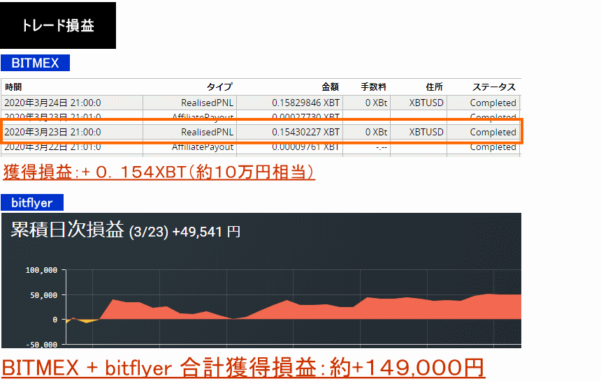 2020年3月23日:+0.154XBT+49,541円=約149,000円