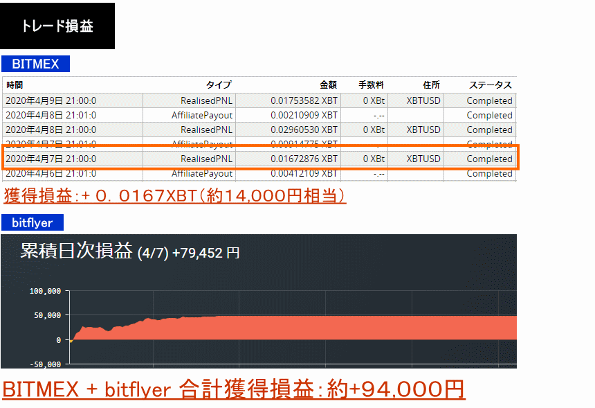 2020年4月7日:+0.0167XBT+79,452円=約94,000円