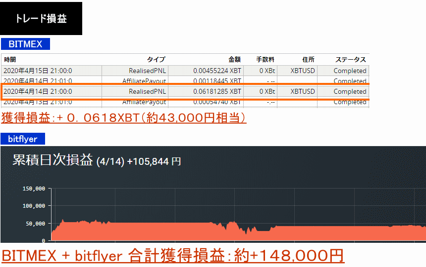 2020年4月21日:+0.0618XBT+105,844円=約148,000円