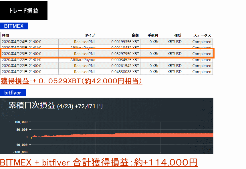 2020年4月23日:+0.0529XBT+72,471円=約114,000円