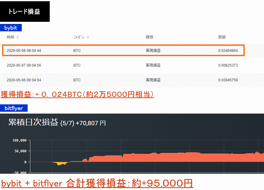 2020年5月9日:+0.024BTC+70,807円=約95,000円