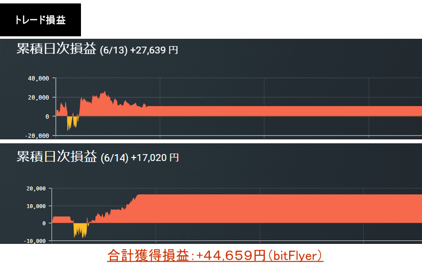 2020年6月13日17時〜14日:+27,639円+17,020円=+44,659円