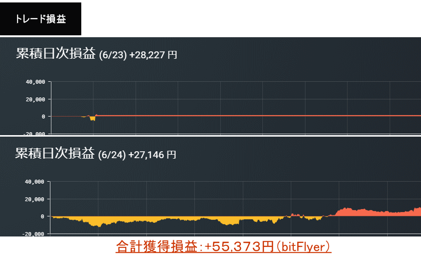 2020年6月23日〜24日:+28,227円+27,146円=55,373円