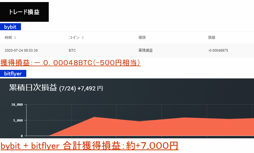 2020年7月24日:−0.00048BTC+7,492円=約7,000円