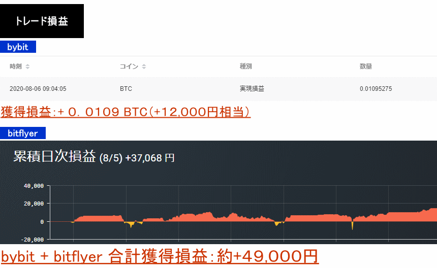 2020年8月5日:+0.0109BTC+37,068円=約49,000円