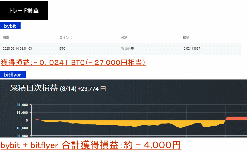 2020年8月14日:−0.0241BTC+23,774円=約−4,000円