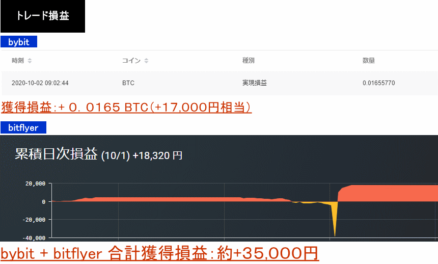 2020年10月1日:+0.0165BTC+18,320円=約35,000円