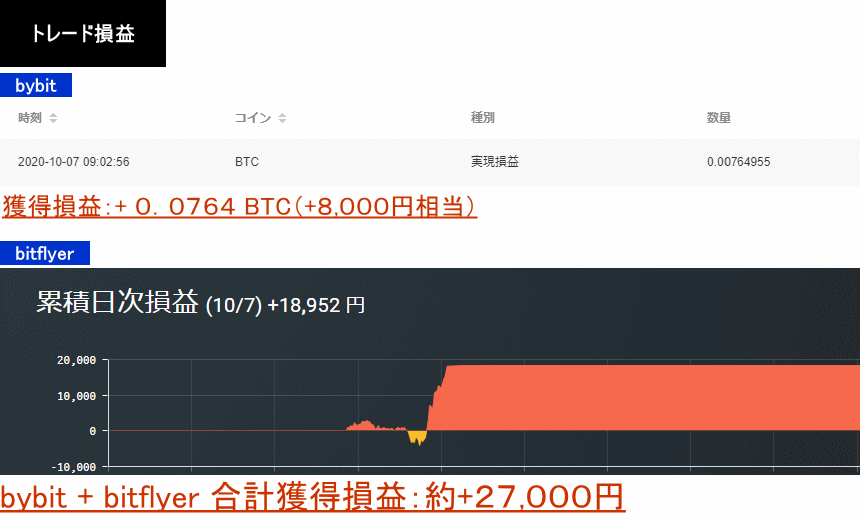 2020年10月7日:+0.0764BTC+18,952円=約27,000円