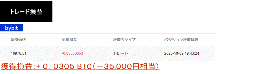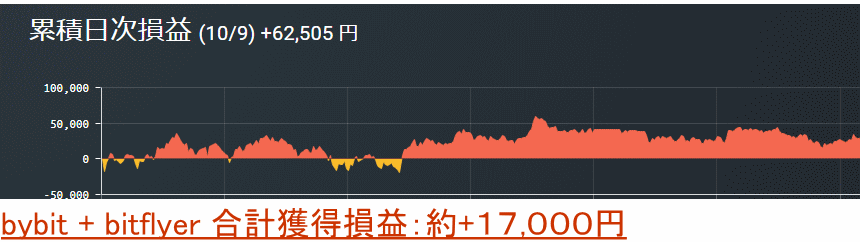 2020年10月9日:−0.0305BTC+62,505円=約17,000円