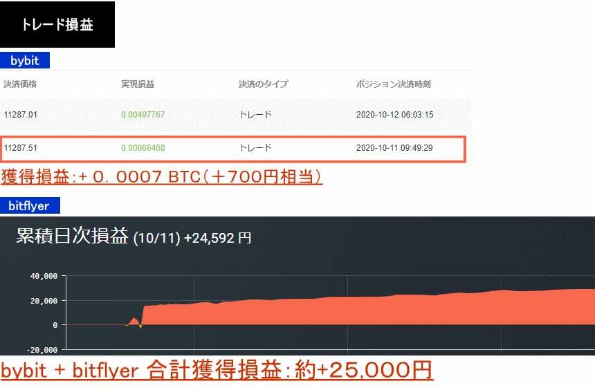 2020年10月11日:+0.0007BTC+24,592円=約25,000円
