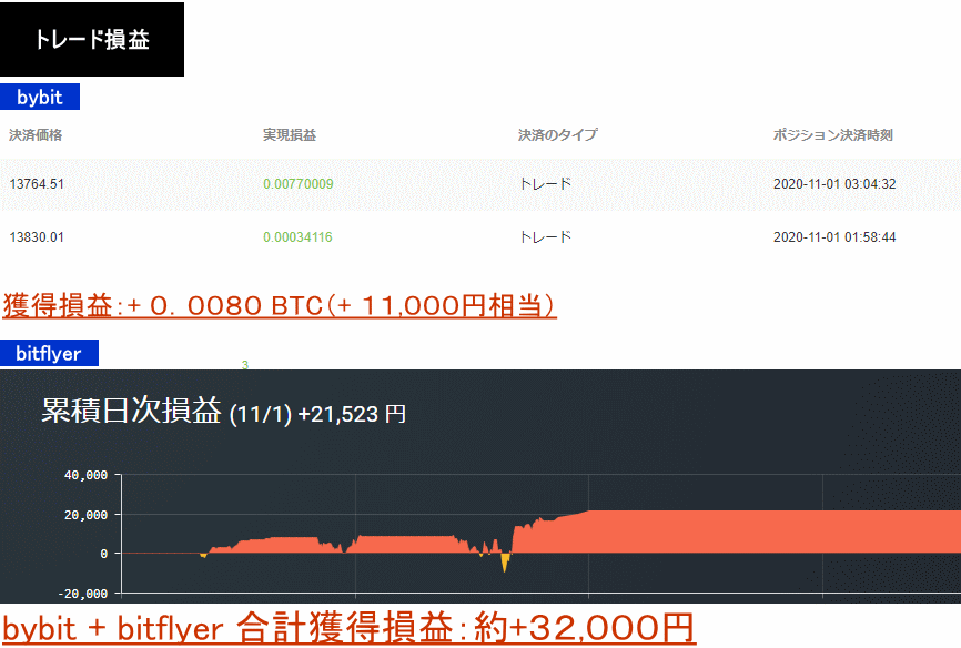 2020年11月1日:+0.008BTC+21,523円=約32,000円