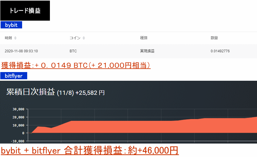 2020年11月8日:+0.0149BTC+25,582円=約46,000円