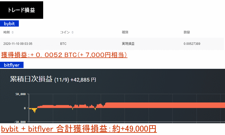 2020年11月9日:+0.0052BTC+42,885円=約49,000円
