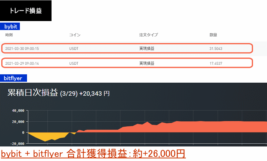 2021年3月15日〜16日:+376.9USDT(約41,000円)