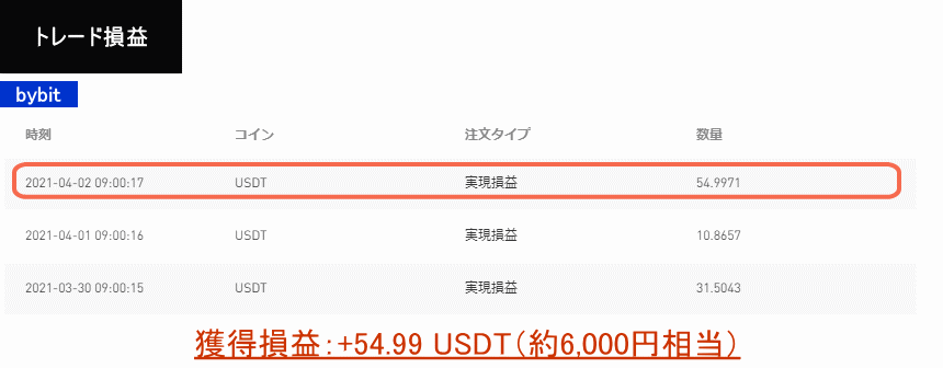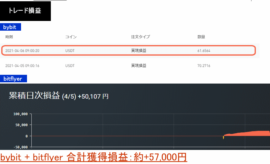 2021年4月5日:+61.65USDT+50,107円=約56,000円