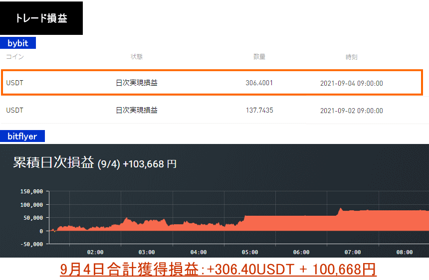2021年9月4日:+306.40USDT+103,668円=約130,000円