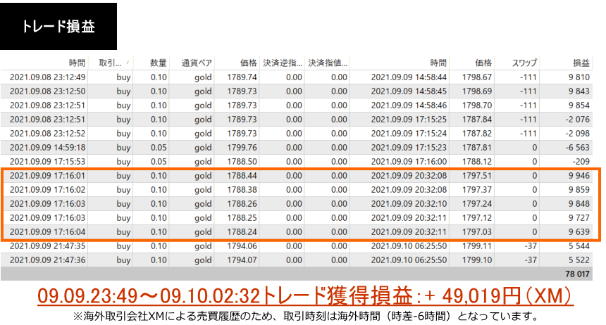 2021年9月17日〜20日:+21,480円(ゴールドトレード)